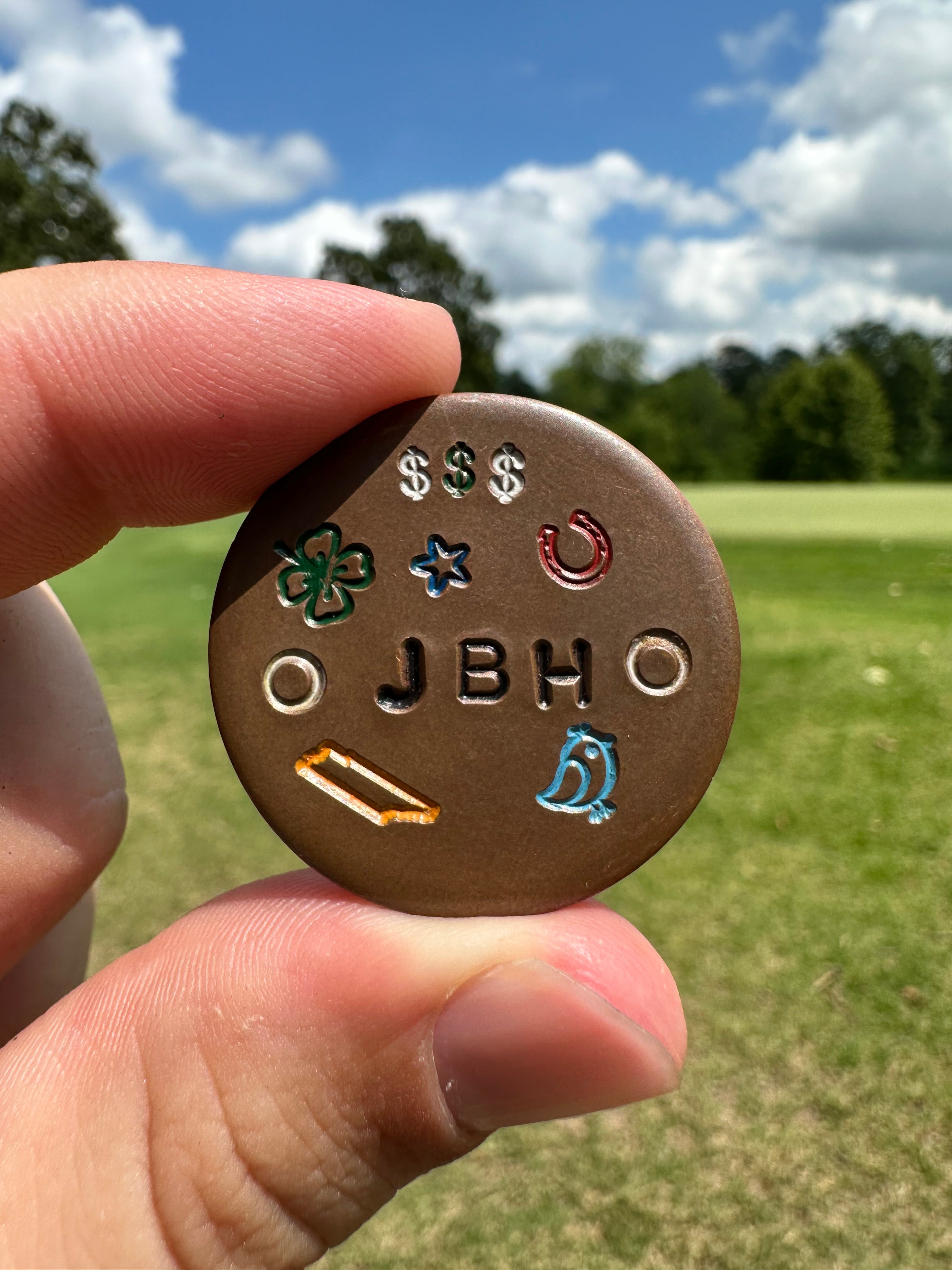Today, we handcraft every ball marker, one at a time, using premium copper, brass, and stainless steel. Some are hand stamped, others laser engraved — but each one carries the same attention to detail that started it all.